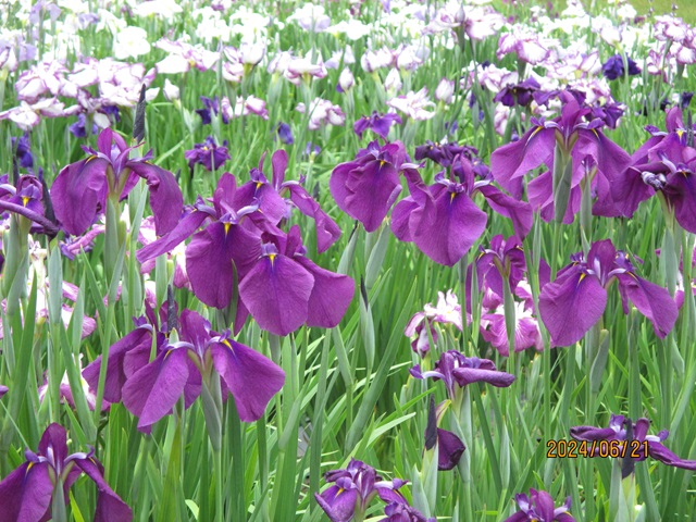 投稿日: 2024年6月24日2024年6月24日五十公野公園 あやめ園 見頃を迎えた五十公野公園あやめ園へ行ってきました。花を手入れする職員の方々のおかげで、とてもきれいな花菖蒲などを見ることができました。公園内の樹々の緑に花々の色が映えて眩しいくらいです。6月とはいえ、梅雨入り前の晴天は暑いくらいの日でしたが、あやめ園は爽やかな風が吹いていました。