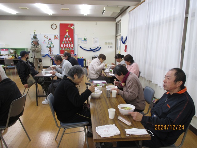 投稿日: 2025年1月15日2025年1月15日交流会 作業所あゆみが猿橋コミュニティセンターを利用しているご縁で、ほのぼの家族さんの交流会『ラーメン屋さんのラーメンを食べよう!』に、お声掛けいただき、一緒に参加させていただきました🍜 製麺工房ドリームさんの移動販売車で作ったラーメンを美味しく食べて、ほのぼの家族に通所されている子どもさん達のハンドベル演奏を聞かせていただきました♪ 子どもさん達とは、日頃接点のない私達ですが、思いがけず楽しい時間を過ごすことができました😊 また、リースや小物などを作る体験コーナーで可愛い小物を手作りしました🎄 楽しいひと時をありがとうございました!