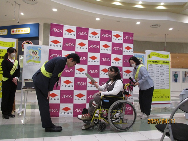 投稿日: 2025年4月18日2025年4月18日イオン幸せの黄色いレシートキャンペーン イオン幸せの黄色いレシートキャンペーン贈呈式に参加しました。イオン新発田店様、またレシートを入れてくださった地域の皆様、今年度も多くのご支援、ご協力をありがとうございました。