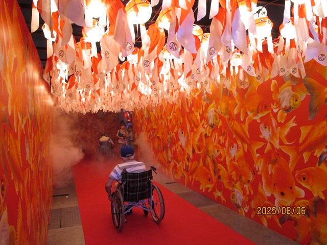 投稿日: 2025年8月20日2025年8月20日錦鯉・金魚アクアリウムへ 研修会で、朱鷺メッセの錦鯉・金魚アクアリウムへ行きました。錦鯉や金魚が様々な形で展示されており、とても見応えがありました。夏休み中でもあり、大勢の方々が来場されていましたが、車椅子で見て回っている私たちもゆっくり鑑賞することが出来ました。